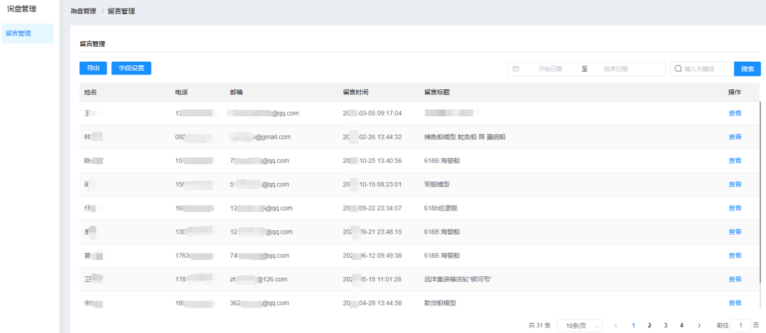 部分留言询盘截图