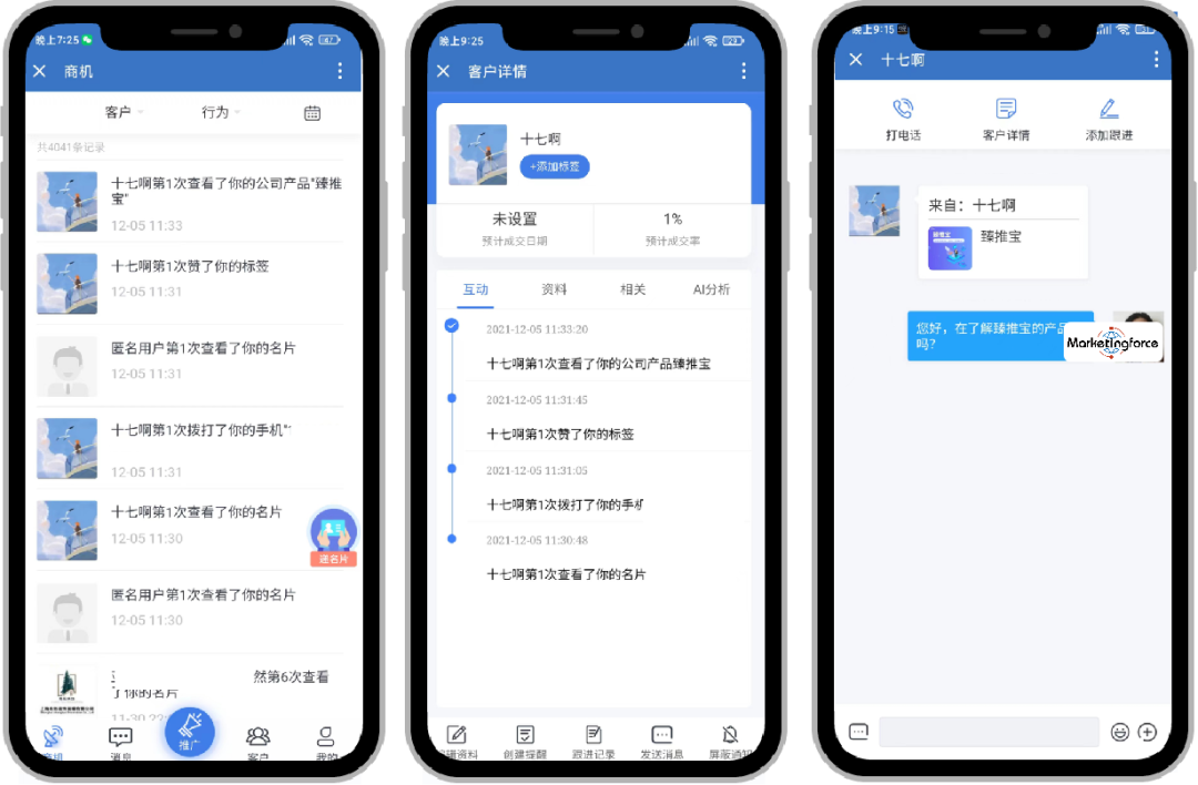 使用臻推宝AI商机功能,可以智能分析客户的行为,精细了解客户需求,判断客户意向,快速锁定潜在客户并进行重点维护,让每次话题开展和产品营销,都落在客户的兴趣点上。