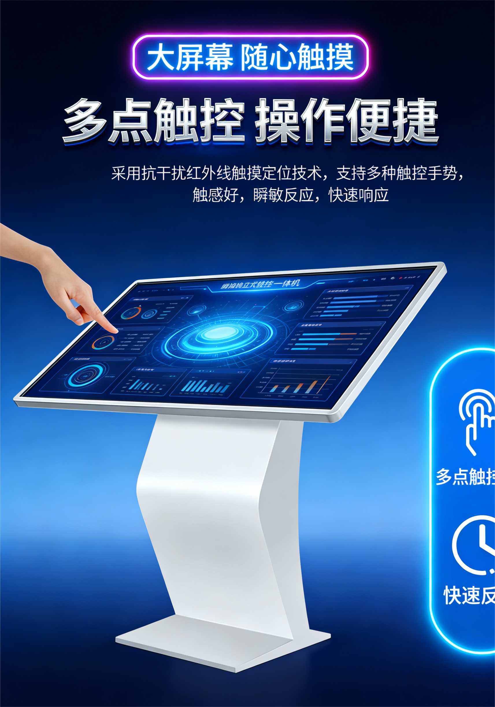 在数字化服务升级的当下,上海霜赛信息科技有限公司深耕智能商显设备领域,打造的立式触摸一体机凭借集成化功能、高清交互体验与全场景适配能力,成为各行业信息展示、自助服务的重要载体,为各类服务大厅、商超、展馆等领域搭建起顺畅的智能交互桥梁。立式触摸一体机集智能触控、高清展示、多元拓展于一体,以硬核配置与定制化服务打破传统信息传播的局限,让信息查询、内容展示、产品介绍更便捷,立式触摸一体机的落地应用,正推动各行业服务模式向智能化、便捷化转型,成为数字化场景中不可或缺的智能设备。立式触摸一体机凭借一机多用的优势,适配不同行业的个性化需求,在各类场景中彰显出强劲的实用价值。
